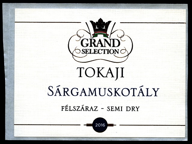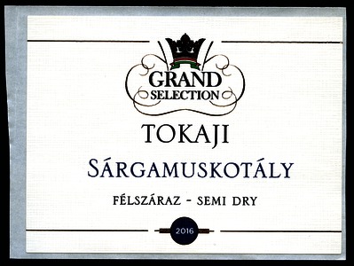 Kun, Zsanett (Digitalizáló): 2016-os tokaji félszáraz sárgamuskotály boroscímke a Grand Tokaj Zrt.-től. (Publikálatlan) (2024)