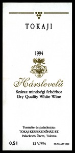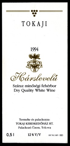 Bortípus: hárslevelű; Termelő neve: Tokaj Kereskedőház Rt.; Évjárat: 1994; színes címke