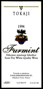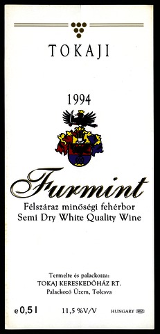 Bortípus: furmint; Termelő neve: Tokaj Kereskedőház Rt.; Évjárat: 1994; színes címke