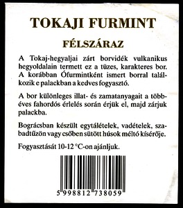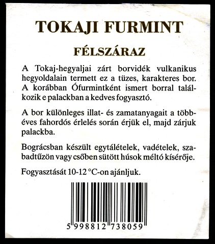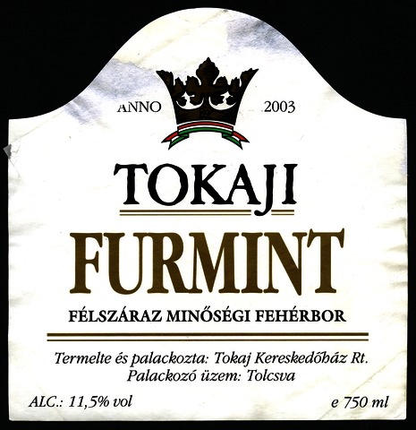 Kun, Zsanett (Digitalizáló): 2003-as tokaji furmint boroscímke a Tokaj Kereskedőház Rt.-től. (Publikálatlan) (2024)