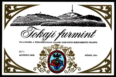Bortípus: furmint; Termelő neve: Tokajhegyaljai Állami Gazdasági Borkombinát; Termelő címe: Sátoraljaújhely; színes címke
