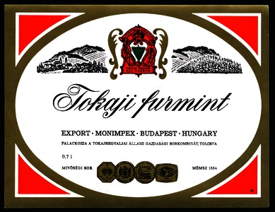 Kun, Zsanett (Digitalizáló): Tokaji furmint boroscímke a Tokajhegyaljai Állami Gazdasági Borkombináttól. (Publikálatlan) (2024)