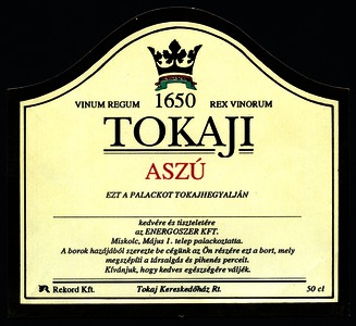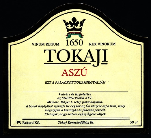 Bortípus: aszú; Termelő neve: Tokaj Kereskedőház Rt.; színes címke