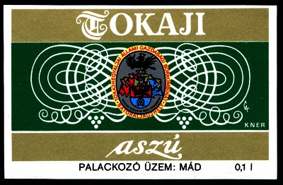Bortípus: aszú; Termelő neve: Tokajhegyaljai Állami Gazdasági Borkombinát; Termelő címe: Sátoraljaújhely; színes címke