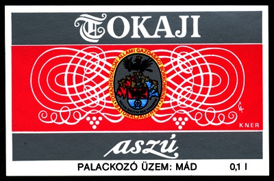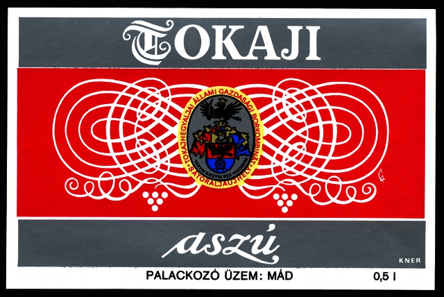 Bortípus: aszú; Termelő neve: Tokajhegyaljai Állami Gazdasági Borkombinát; Termelő címe: Sátoraljaújhely; színes címke