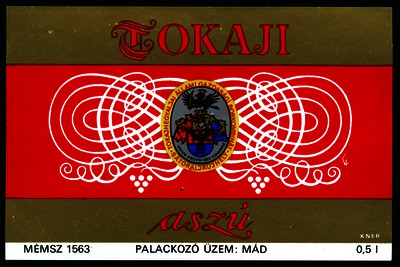 Bortípus: aszú; Termelő neve: Tokajhegyaljai Állami Gazdasági Borkombinát; Termelő címe: Sátoraljaújhely; színes címke