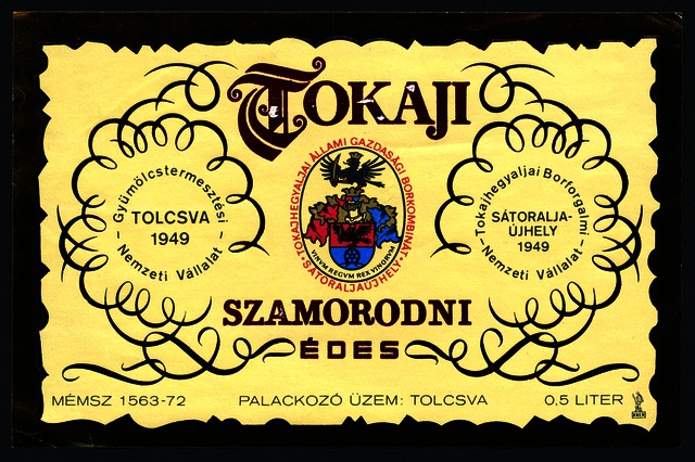 Bortípus: szamorodni; Termelő neve: Tokajhegyaljai Állami Gazdasági Borkombinát; Termelő címe: Sátoraljaújhely; színes címke