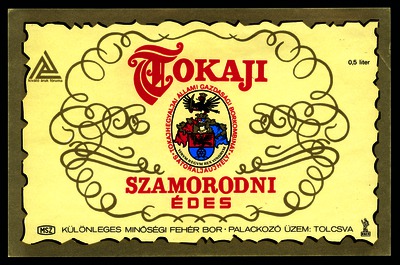 Bortípus: szamorodni; Termelő neve: Tokajhegyaljai Állami Gazdasági Borkombinát; Termelő címe: Sátoraljaújhely; színes címke