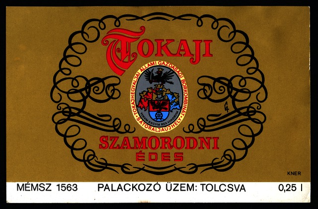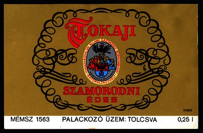 Bortípus: szamorodni; Termelő neve: Tokajhegyaljai Állami Gazdasági Borkombinát; Termelő címe: Sátoraljaújhely; színes címke