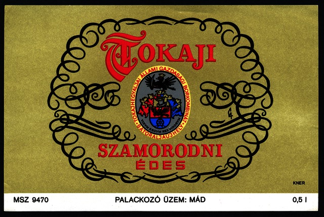 Bortípus: szamorodni; Termelő neve: Tokajhegyaljai Állami Gazdasági Borkombinát; Termelő címe: Sátoraljaújhely; színes címke