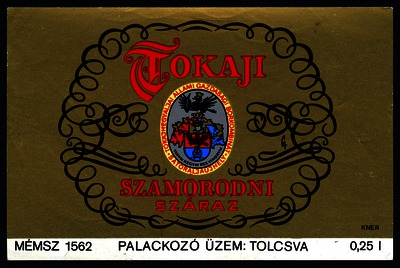 Bortípus: szamorodni; Termelő neve: Tokajhegyaljai Állami Gazdasági Borkombinát; Termelő címe: Sátoraljaújhely; színes címke
