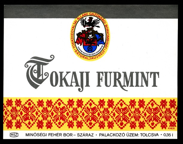 Bortípus: furmint; Termelő neve: Tokajhegyaljai Állami Gazdasági Borkombinát; Termelő címe: Sátoraljaújhely; színes címke