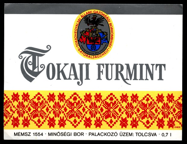 Bortípus: furmint; Termelő neve: Tokajhegyaljai Állami Gazdasági Borkombinát; Termelő címe: Sátoraljaújhely; színes címke