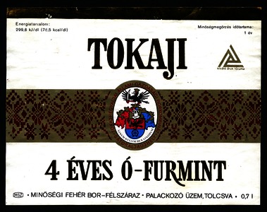 Kun, Zsanett (Digitalizáló): 4 éves tokaji ó-furmint boroscímke a Tokajhegyaljai Állami Gazdasági Borkombináttól. (Publikálatlan) (2024)