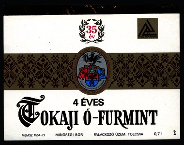 Bortípus: ó-furmint; Termelő neve: Tokajhegyaljai Állami Gazdasági Borkombinát; Termelő címe: Sátoraljaújhely; színes címke