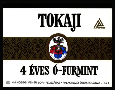 Bortípus: ó-furmint; Termelő neve: Tokajhegyaljai Állami Gazdasági Borkombinát; Termelő címe: Sátoraljaújhely; színes címke