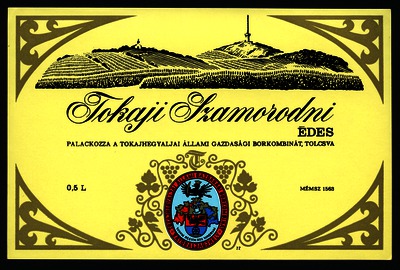 Bortípus: szamorodni; Termelő neve: Tokajhegyaljai Állami Gazdasági Borkombinát; Termelő címe: Sátoraljaújhely; színes címke