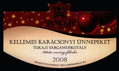 Bortípus: sárga muskotály; Termelő neve: Tokaj Kereskedőház Zrt.; Évjárat: 2008; színes címke
