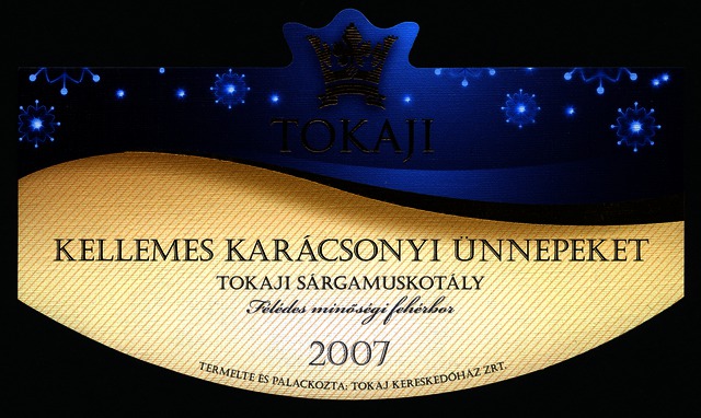 Bortípus: sárga muskotály; Termelő neve: Tokaj Kereskedőház Rt.; Évjárat: 2007; színes címke
