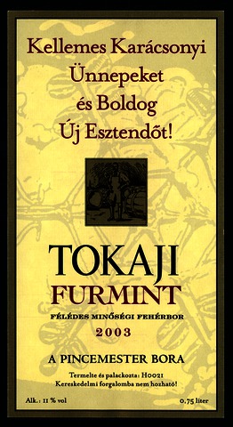 Bortípus: furmint; Termelő neve: H0021; Évjárat: 2003; színes címke