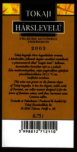 Kun, Zsanett (Digitalizáló): 2003-as tokaji hárslevelű boroscímke a Tokaj Kereskedőház Rt.-től. (Publikálatlan) (2024)
