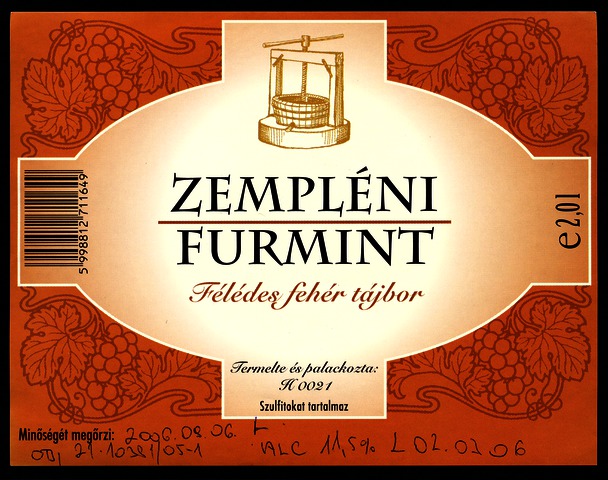 Kun, Zsanett (Digitalizáló): Zempléni furmint boroscímke a H0021-től. (Publikálatlan) (2024)