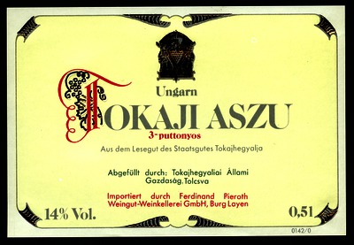 Bortípus: aszú; Termelő neve: Tokajhegyaljai Állami Gazdaság; színes címke