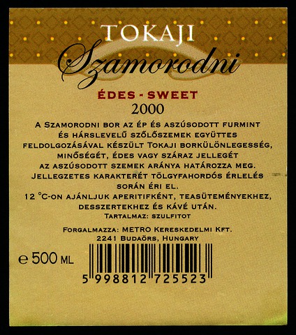 Kun, Zsanett (Digitalizáló): 2000-es tokaji édes szamorodni boroscímke a H0021 Hungarytől. (Publikálatlan) (2024)