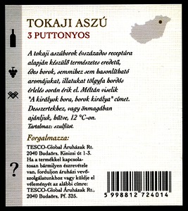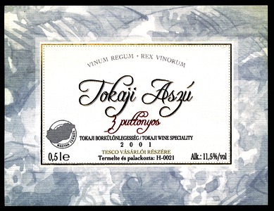 Bortípus: aszú; Termelő neve: H0021; Évjárat: 252001; színes címke