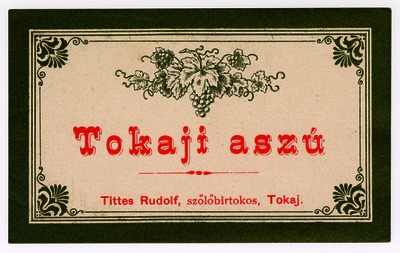 Kun, Zsanett (Digitalizáló): Tokaji aszú boroscímke Tittes Rudolftól. (Publikálatlan) (2024)