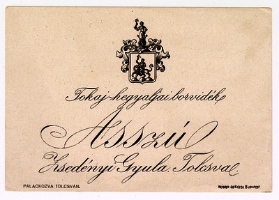 Kun, Zsanett (Digitalizáló): Tokaji aszú boroscímke Zsedényi Gyulától. (Publikálatlan) (2024)