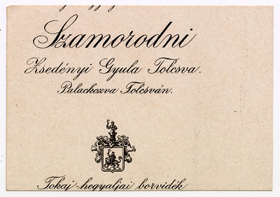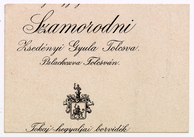 Kun, Zsanett (Digitalizáló): Tokaji szamorodni boroscímke Zsedényi Gyulától. (Publikálatlan) (2024)