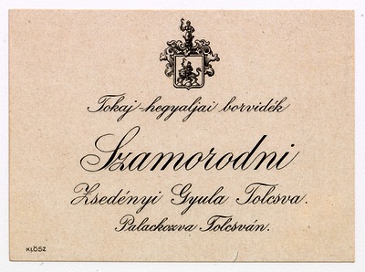 Kun, Zsanett (Digitalizáló): Tokaji szamorodni boroscímke Zsedényi Gyulától. (Publikálatlan) (2024)