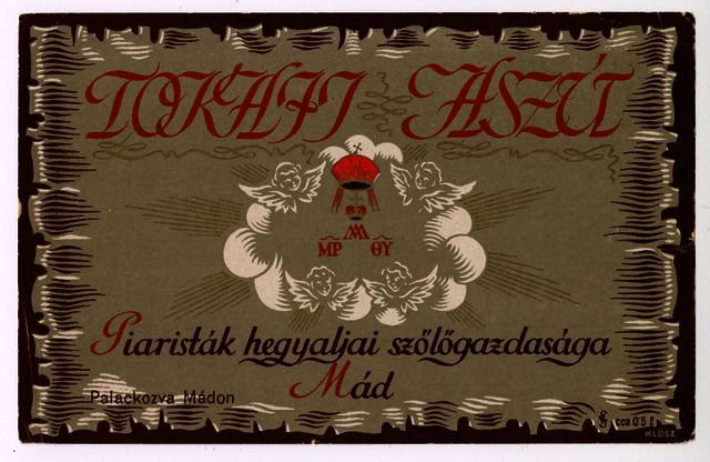 Kun, Zsanett (Digitalizáló): Tokaji aszú boroscímke a Piaristák hegyaljai szőlőgazdaságától. (Publikálatlan) (2024)