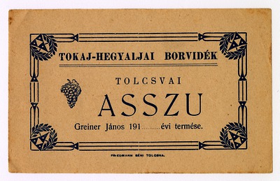 Kun, Zsanett (Digitalizáló): Tolcsvai aszú boroscímke Greiner Jánostól az 1910-es évekből. (Publikálatlan) (2024)