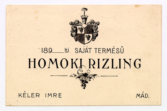 Kun, Zsanett (Digitalizáló): Homoki rizling boroscímke az 1890-es évekből Kéler Imrétől. (Publikálatlan) (2024)