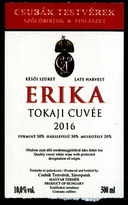 Bortípus: cuvée; Termelő neve: Csubák Testvérek; Termelő címe: Sárospatak; Évjárat: 2016; színes címke