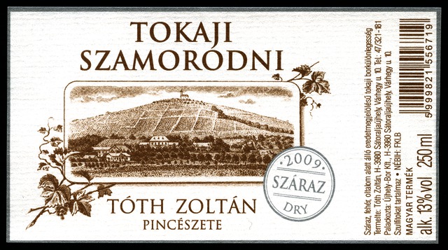 Kun, Zsanett (Digitalizáló): 2009-es tokaji száraz szamorodni boroscímke Tóth Zoltán pincészetétől. (Publikálatlan) (2024)