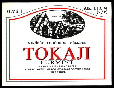 Tokaji félédes furmint boroscímke a Hercegkúti Mezőgazdasági Szövetkezettől