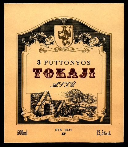 Bortípus: aszú; Termelő neve: Hercegkúti MGSZ.; Termelő címe: Hercegkút; színes címke