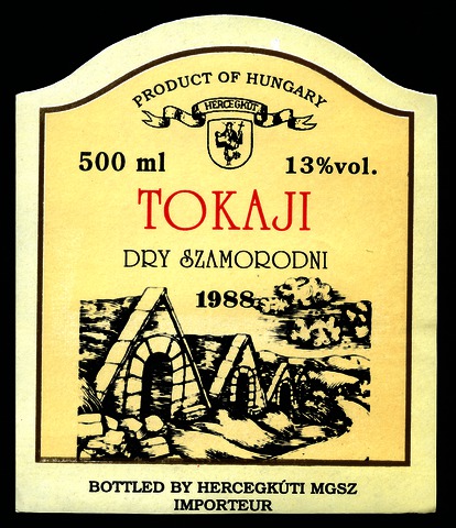 Bortípus: szamorodni; Termelő neve: Hercegkúti Mgsz.; Termelő címe: Hercegkút; Évjárat: 1988; színes címke