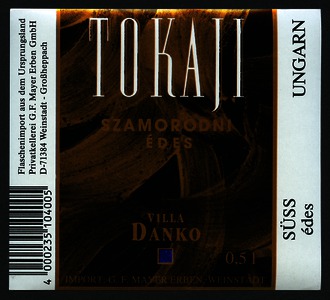 Bortípus: szamorodni; Termelő neve: Villa Dankó; színes címke