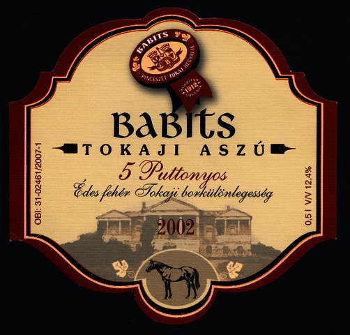 Kun, Zsanett (Digitalizáló): 2002-es 5 puttonyos tokaji aszú boroscímke a Babits Pincészettől. (Publikálatlan) (2024)