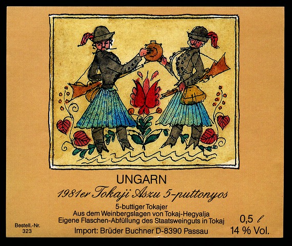 Kun, Zsanett (Digitalizáló): 1981-es 5 puttonyos tokaji aszú boroscímke a Brüder Buchner importban. (Publikálatlan) (2024)