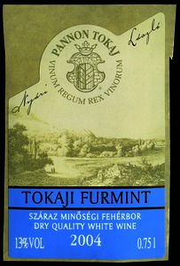 Bortípus: furmint; Termelő neve: Pannon Tokaj Kft.; Termelő címe: Tolcsva; Évjárat: 2004; színes címke
