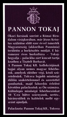 Kun, Zsanett (Digitalizáló): Tokaji furmint boroscímke a Pannon Tokaj Kft.-től. (Publikálatlan) (2024)
