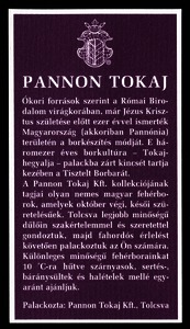 Bortípus: furmint; Termelő neve: Pannon Tokaj Kft.; Termelő címe: Tolcsva; színes címke
