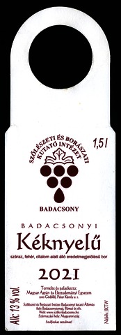 Kun, Zsanett (Digitalizáló): 2021-es badacsonyi kéknyelű száraz fehérbor a Magyar Agrár- és Élettudományi Egyetemtől. (Publikálatlan) (2024)
