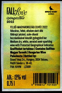 Bortípus: cuvée; Termelő neve: Grand Tokaj Zrt.; Termelő címe: 3934 Tolcsva, Petőfi S. u. 36-40.; Évjárat: 2022; színes címke