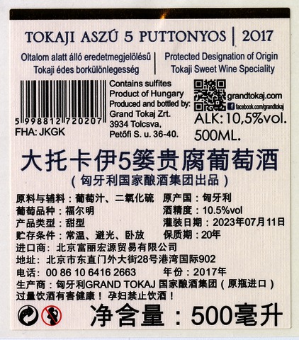 Kun, Zsanett (Digitalizáló): 2017-es 5 puttonyos tokaji aszú boroscímke a Grand Tokaj Zrt.-től. (Publikálatlan) (2024)